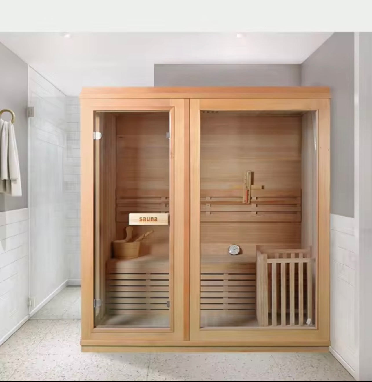 Relax, unwind, and detox from home with this 4-person indoor steam sauna. Made from premium Canadian Hemlock wood, it heats up fast and gives you that authentic spa experience perfect for recovery, stress relief, and daily wellness.